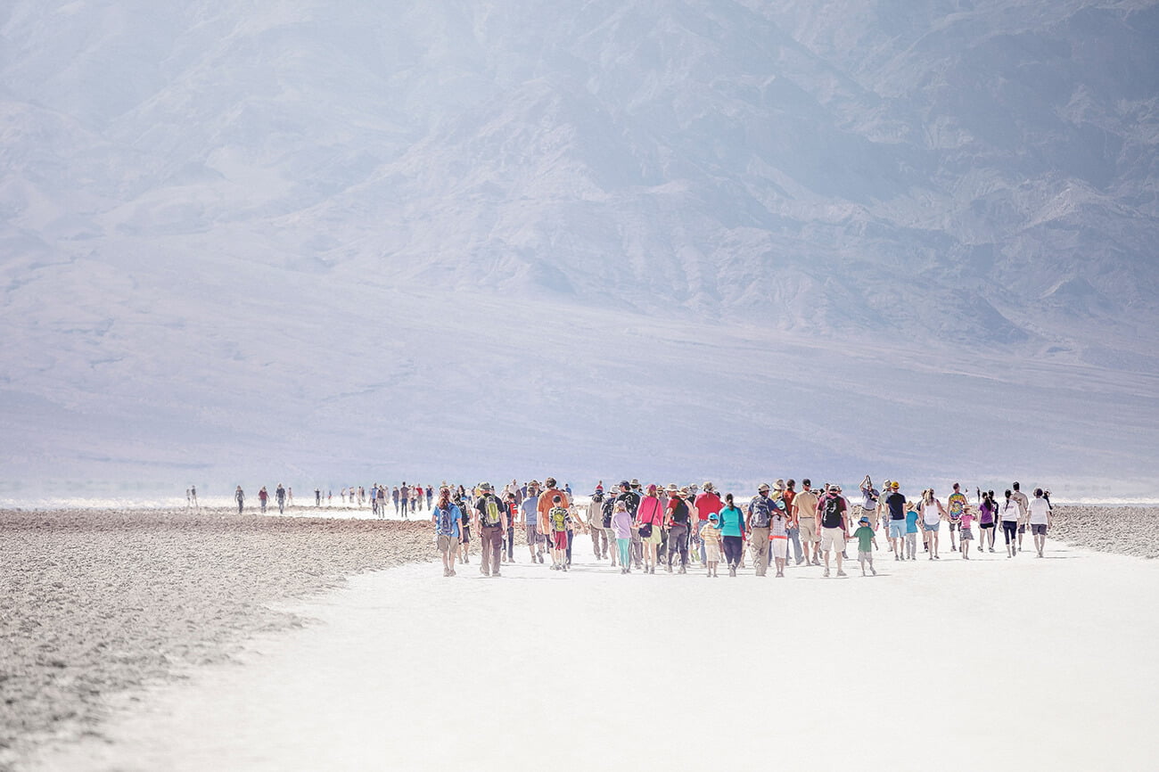 Our civilization seems to be in search of a sustainable lifestyle that preserves the foundations of human life and saves it from collapse. The picture shows “wealth tourists” at one of the driest, most inhospitable places on earth, Death Valley. What do you think we are looking for here?”