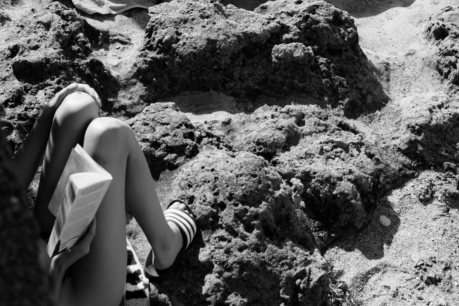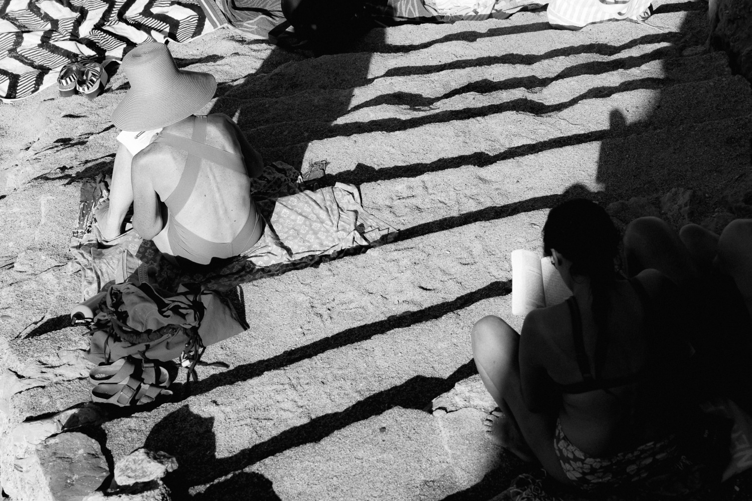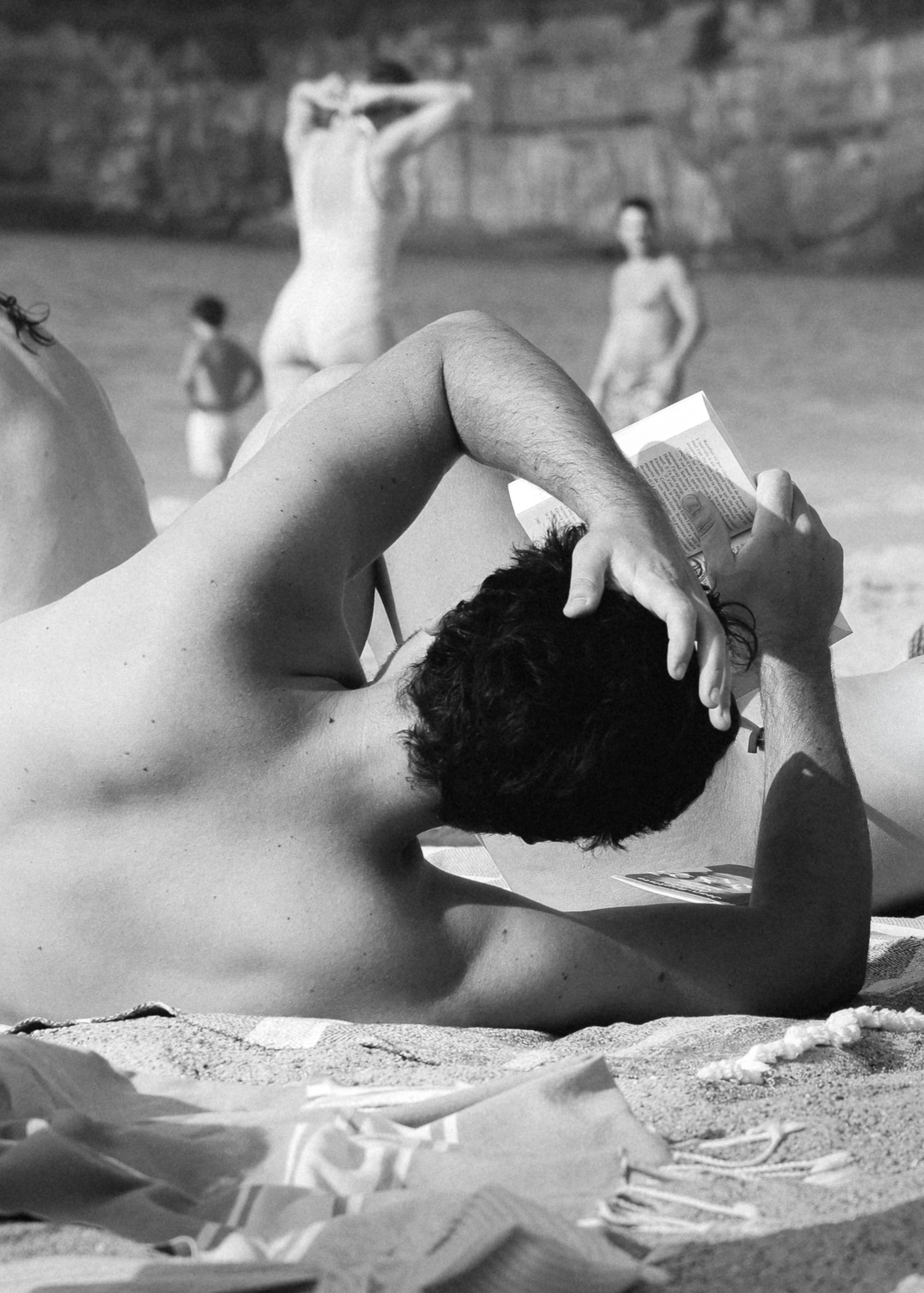 LA PLAGE (The Beach) is a playful and contemplative reportage of our society on vacation. Bodies, relationships, and freedom unfold under the sun of Biarritz (FR), carried by the tangible sensations of the beach, from rugged rocks to bare skin. A monochrome series that captures the timeless atmosphere of the seaside town, merging nostalgia with glimpses of the present. LA PLAGE is a personal project that reveals tourism through a different lens. The result of an approach that is both artistic and documentary: a visual narrative where the body becomes material, nature a field of textures, and society the subject of observation. A constant dialogue between the human body and nature, a sensitive exploration of living textures. An inclusive gaze on our society, a sincere portrait embracing all ages and bodies.
