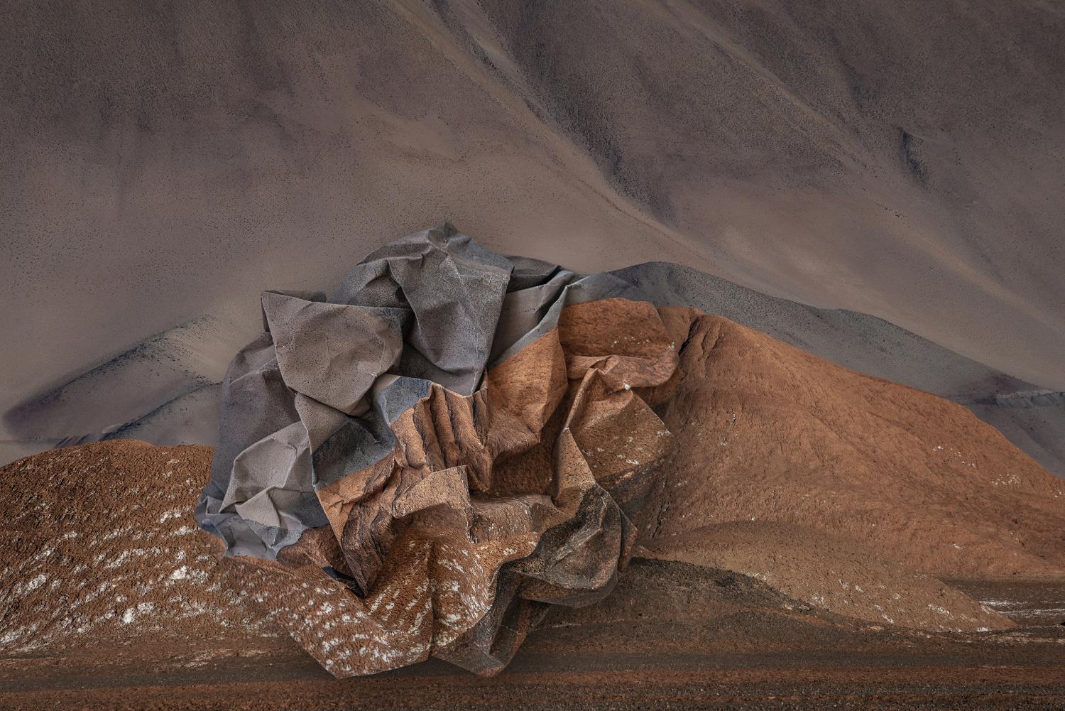 In my travels around the world, from southern Argentina to the ice sheet of Greenland, I have always been drawn to solitary and silent sceneries. They are to me places of shelter and protection, private sanctuaries. These feelings inspired me to devise a way in which I could try to reciprocate Nature’s offering. My work is therefore a tribute to these emotional refuges, to places that have suffered terrible environmental ravage. It may also be a farewell to them. Through the materiality of the printed image, I intend to highlight the violent damage inflicted upon the sceneries I photograph, by manipulating and distorting my own landscapes. These landscapes that at first glance would seem pristine and immaculate, upon a closer look reveal deterioration and disintegration. I see my work as a wake-up call - a way of challenging our relationship with the natural world. It is said that a wrinkled piece of paper can never regain its original shape; the trace persists. In the same way, nature which is disrespectfully invaded is forever broken, and many times unrecoverable.