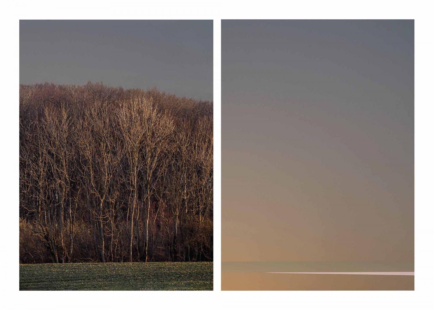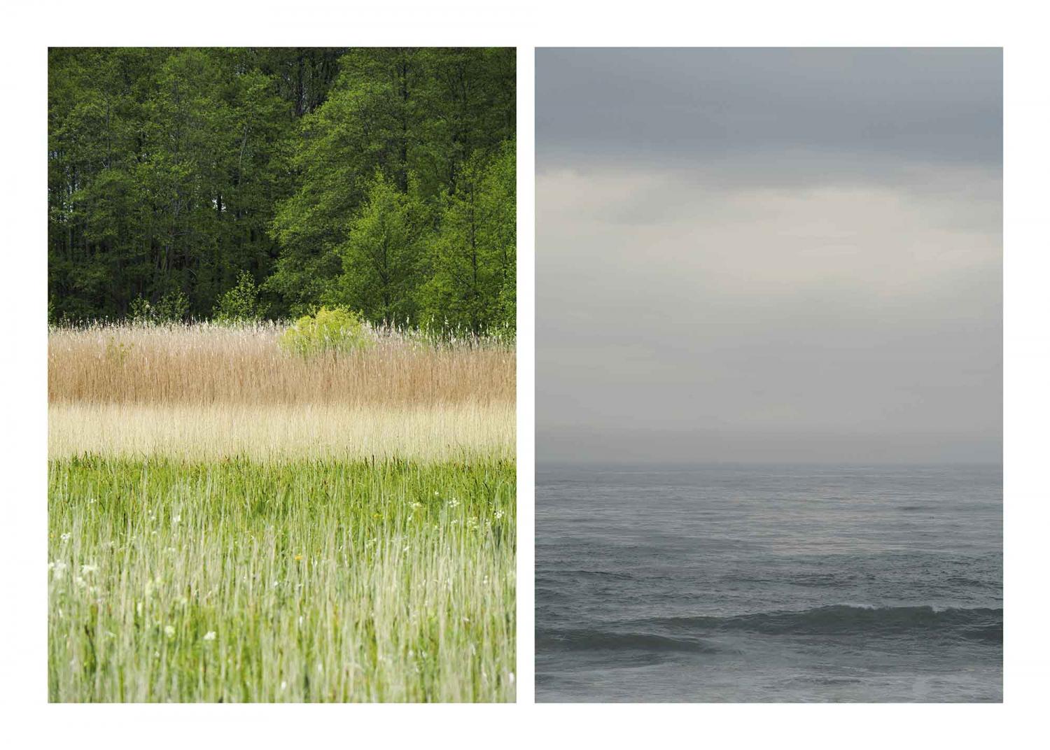 IT TAKES COURAGE TO LEAVE This series revolves around the different rooms to which we are tied, in our minds and in real space. It is also concerned with the rooms we cross and inhabit in space and time, and the tension between mind space and real space and how these two spaces interact when we look at a photograph or go into nature. For this series Karin v. Oldershausen went rambling through her immediate surroundings and she realised how much the landscape was composed of a variety of rooms, in each of which different animals, insects and plants lived. Boundaries and thresholds between rooms are very attractive, they are tantalising places where something when stepped over might happen, fascinating places might reveal themselves. But to leave a familiar room is perhaps one of the most courageous actions one can perform. From the day we go to school for the first time and leave home, we keep leaving rooms. And one day we realise that we are also tied to mental rooms. Karin von Oldershausen takes photographs of the thresholds to different natural habitats, the fringes of the wood, the reed, the grassland. Behind the threshold there is a hidden room and a story which is not available to the eyes. A second photograph on the right shows the threshold we can never reach: The horizon, where our imagination is free to imagine what lies behind. The viewer is invited to move from one mental space to the other, from a rigid, bound to a place, tight state of mind to a free one. Mental room joins the physical room: It takes courage to leave our mental space. What also struck her was that the thresholds were peaceful and silent places, familiar places, mysterious places, between light and dark. They felt like ambiguous places of transition, from life to death. And again: It takes courage to die.