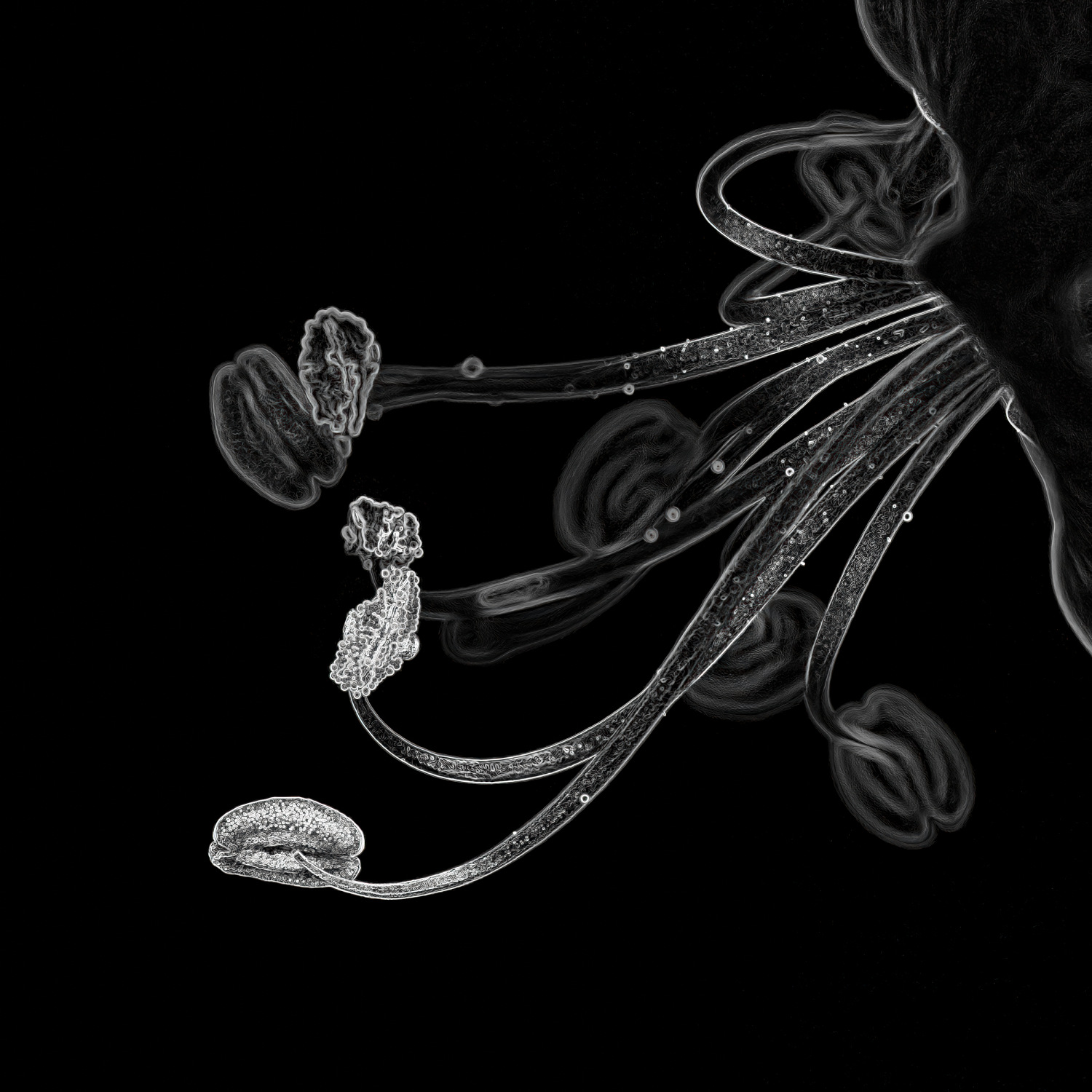 These photos are an excerpt from a larger series I\\\'m doing to bring out the shapes nature creates in flowers. All photos were taken in my garden with a macro lens. Inspired by movies \\\'Journey to the center of the earth\\\' and \\\'Avatar\\\', with a new personal technique of post-processing using filters, the flowers have become similar to bioluminescent plants.