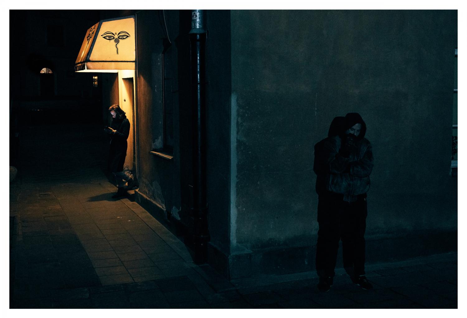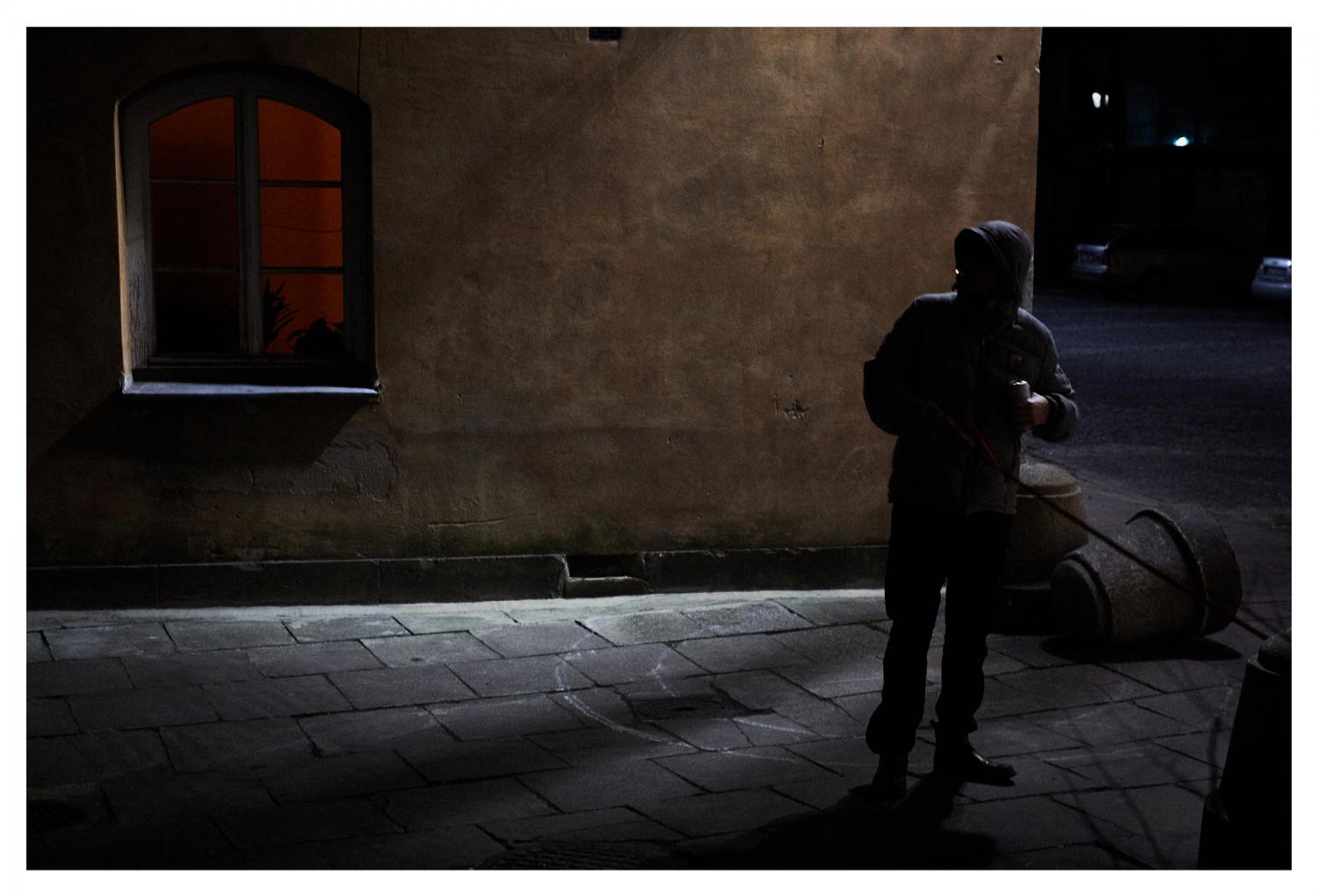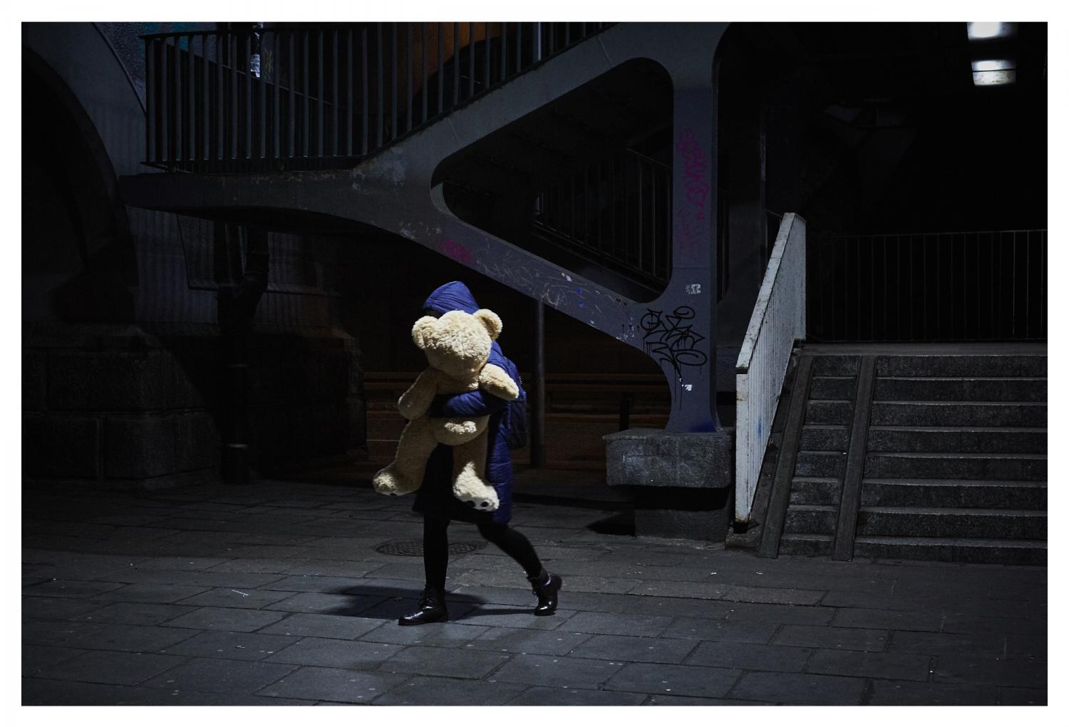 These images are about Warsaw, the anonymity and loneliness of a big city, the unexpected encounters and the way we are interlocked with urban geometry. We are not ruling the space around us, we are merely a humble part of it. Only by acknowledging that can we truly appreciate it.