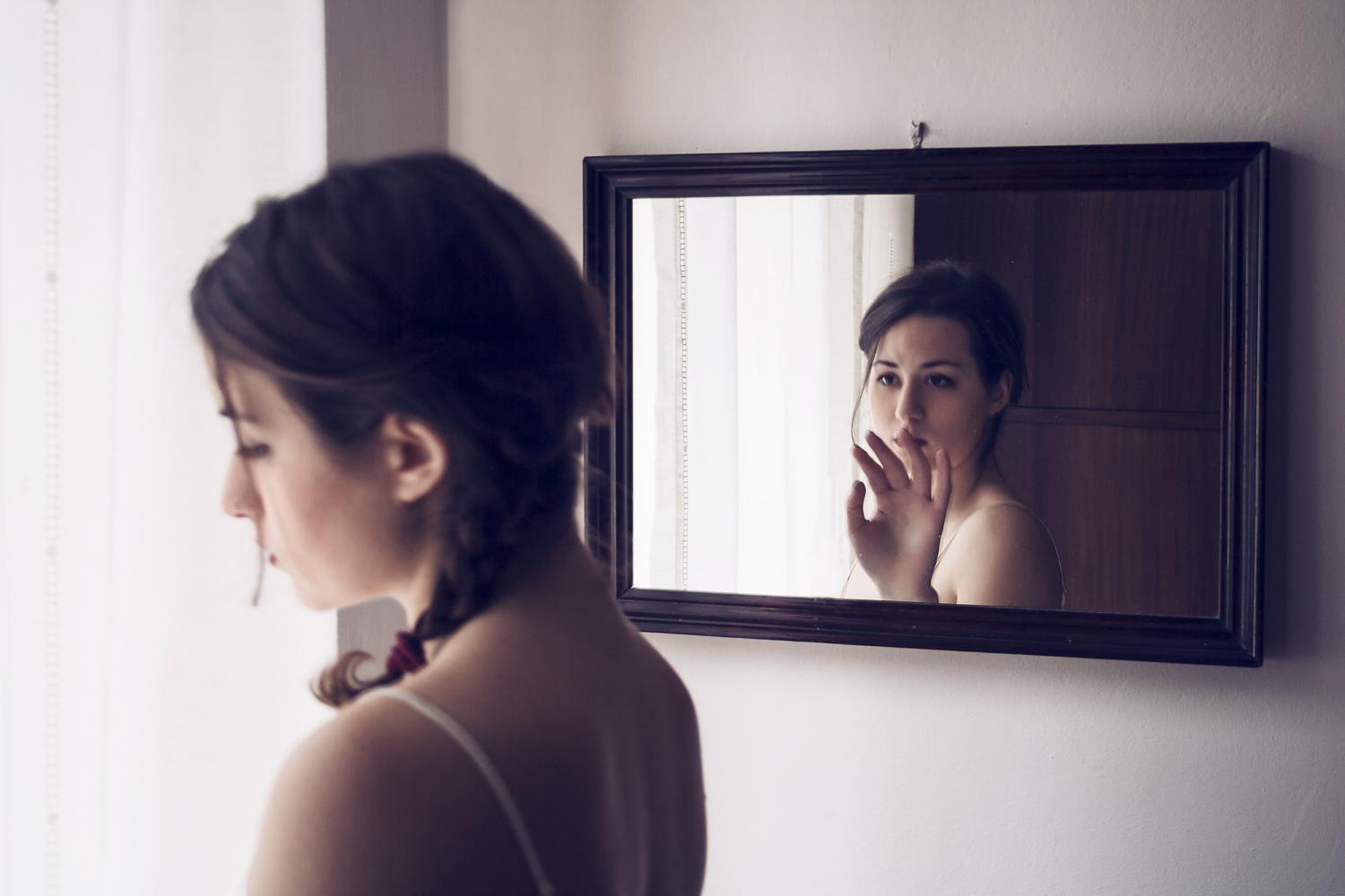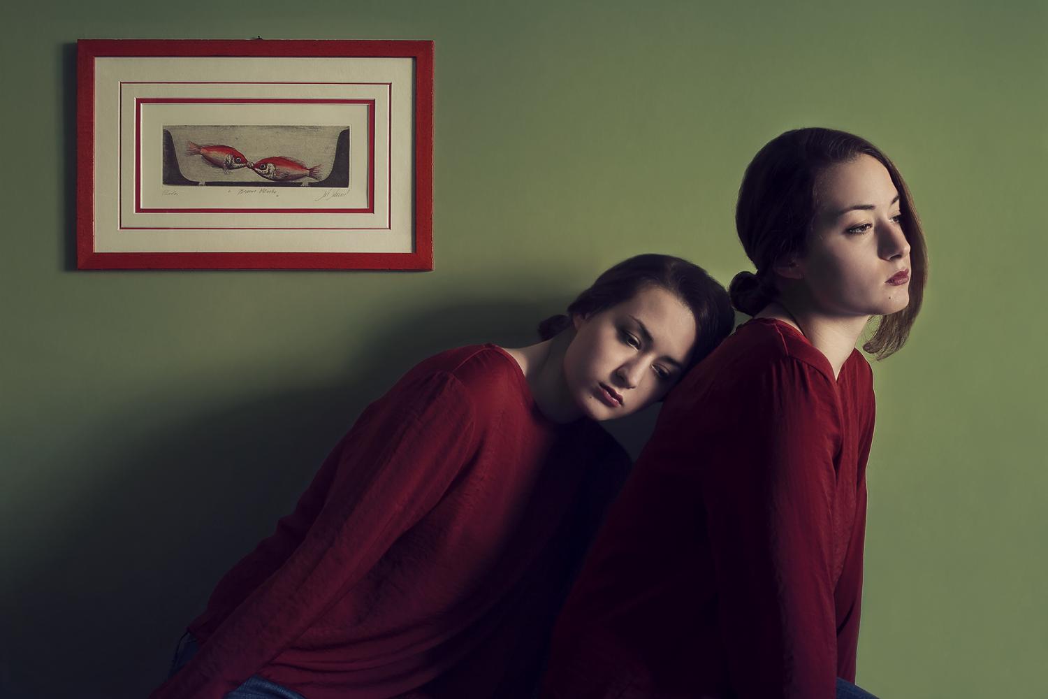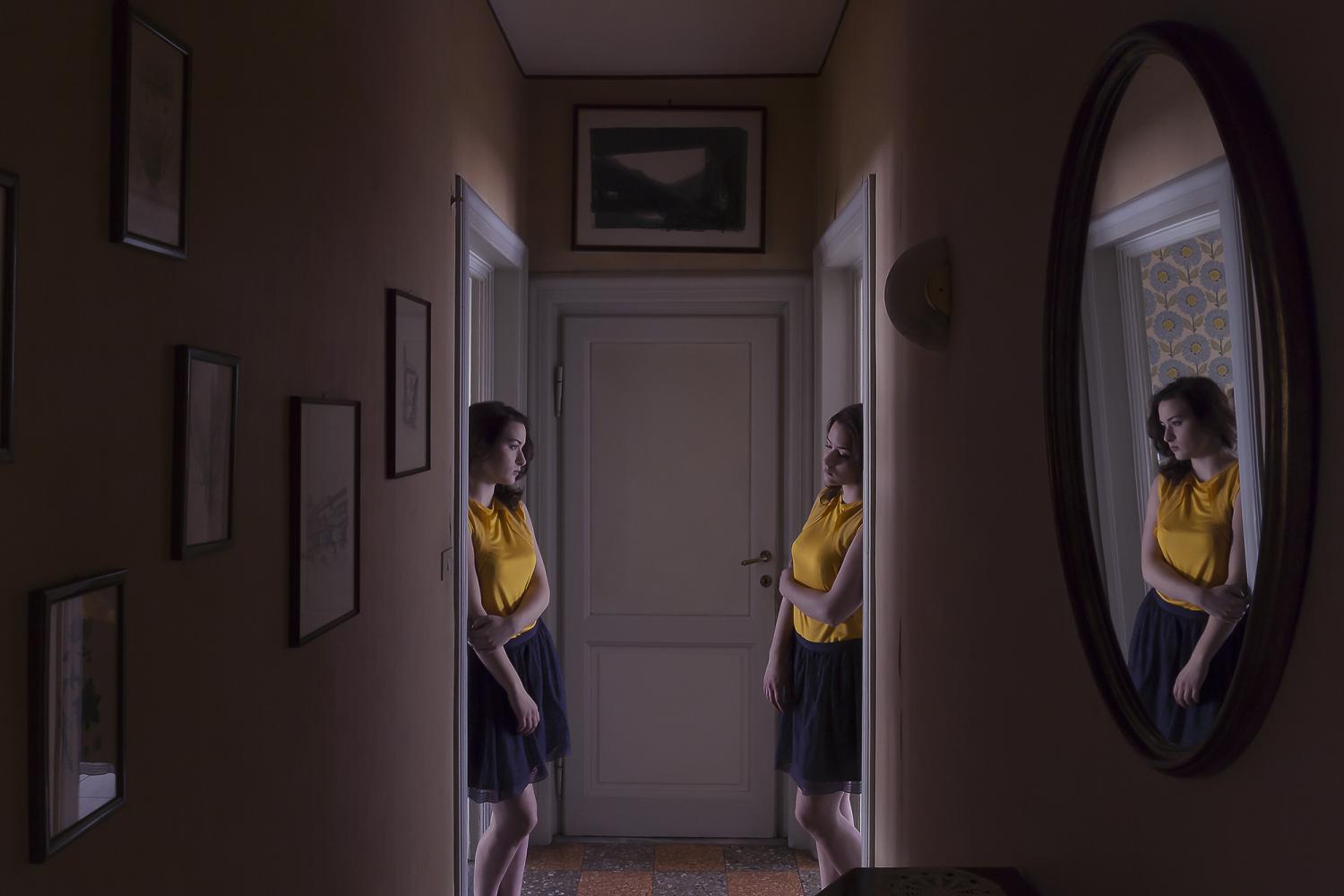 Sometimes I could perceive my inner ego observing my physical self, analyzing every action and feeling of her, and judging, blaming her for every mistake, every lost chance. I understood how this process was destructive, I was feeding my own insecurity and watching it grow. Now I’m trying to turn this severe inner-self into a more sympathetic one, more encouraging and strong, a determinate, self-confident interiority. Whatever kind of relationship we have with our inner-self, we all have introspective moments in which we communicate with our deepest side. With this series of self-portraits I tried to represent these moments. Trough the photo montage technique I wanted to focus on the connection between my external and interior life.