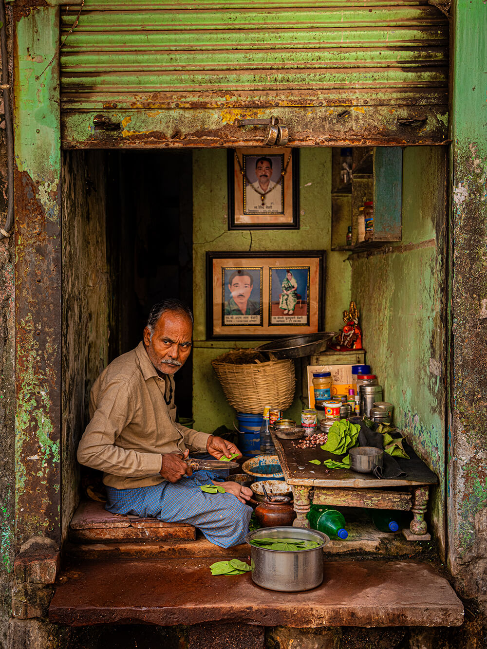 Another favorite is the man preparing betel leaves in a narrow alley in Varanasi [A Bite of Tradition, below]. It’s a simple scene, but visually it was incredibly rich: the tight space, the layers of texture, and the way every object has its place. For me it says a lot about India – this ability to create order, color, and ritual in the middle of density.