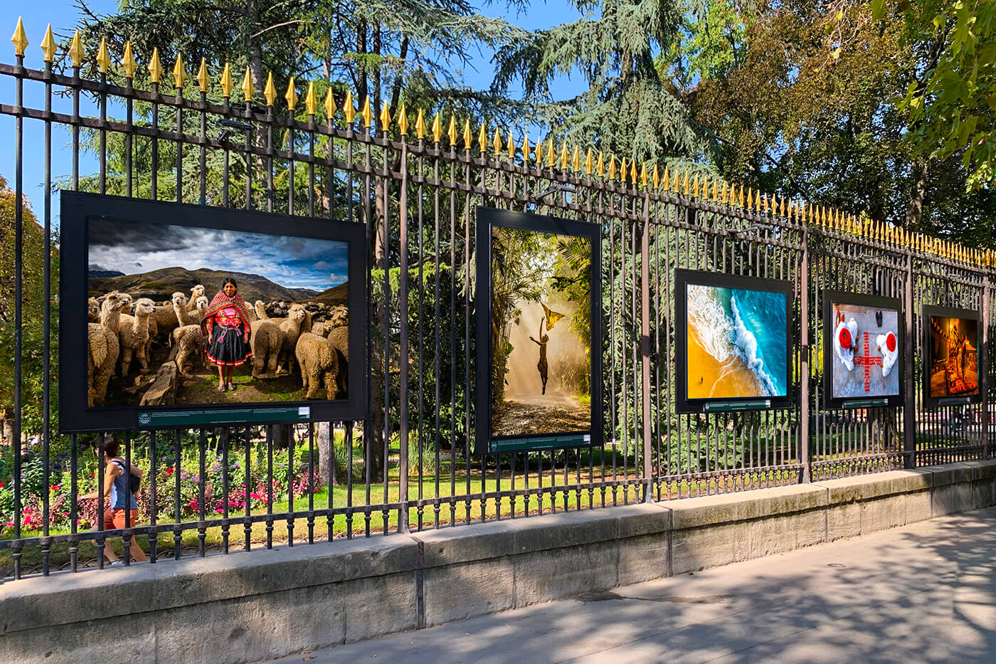 Arranging an outdoor exhibition is a completely different exercise from a gallery show, because you’re not controlling the conditions, you’re working with them. At the Jardin du Luxembourg, the audience is moving, the light changes constantly, and people might stop for ten seconds or come back several times over the course of weeks. So the sequence has to work in fragments: each image needs immediate impact at a distance, but also enough depth to reward a slower second look.